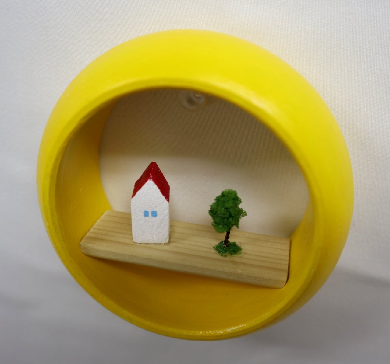 三角屋根の小さな家をテーマにしたミニチュア立体作品です。