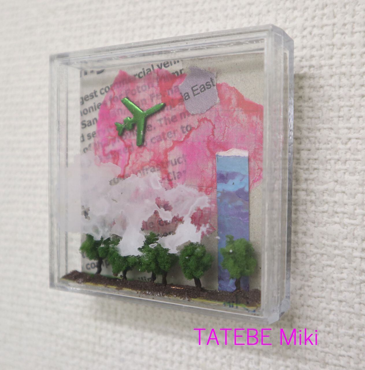 小さな透明ケースにコラージュしたり立体を入れたりした
