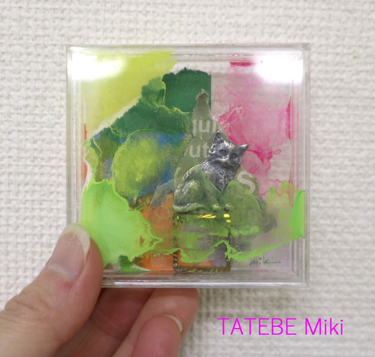 小さな透明ケースにコラージュしたり立体を入れたりした